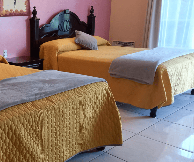 La habitación sencilla o doble cuenta con 2 camas matrimoniales, baño equipado, closet, 2 cobertores y un calentador, burro de planchar, una silla, tocador con espejo, aire acondicionado, televisión y todas cuentan con una ventana para apreciar de la gran vista que tenemos para usted.